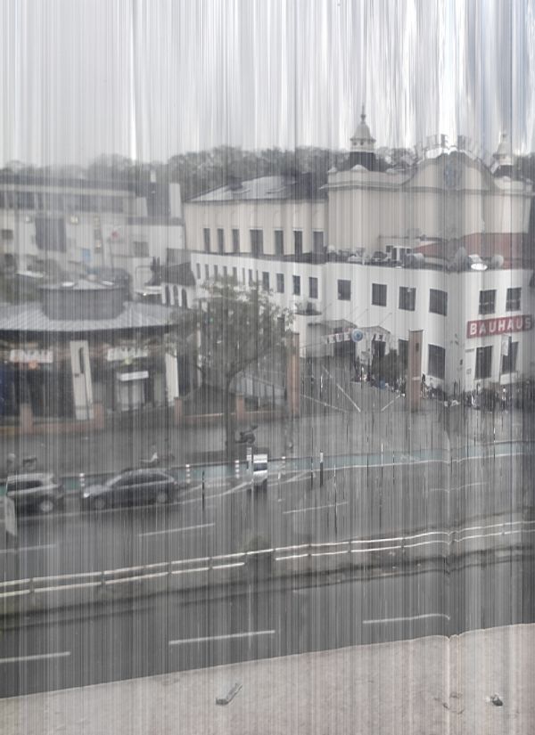 static timelapse of huxleys neue welt – including people camping for Joshua Bassett. one vertical column of pixels is one minute. generated from 785 photos taken from 6 AM to 7 PM.